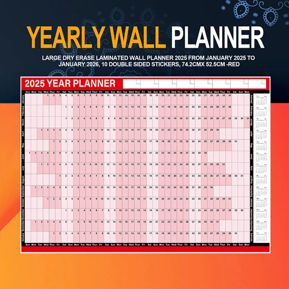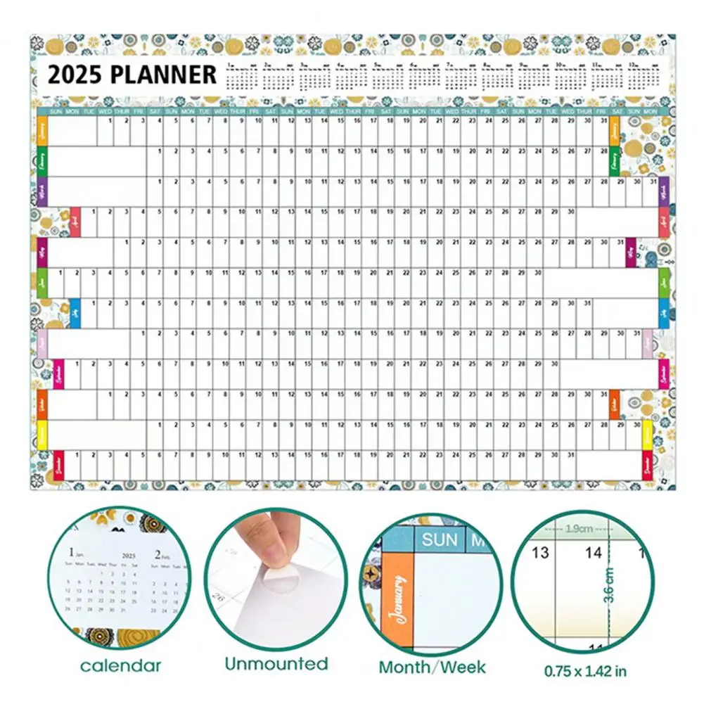 2025 Yearly Wall Calendar Full Year Annual Wall Calendar in One Page 12 Month Planner with Stickers for Office School Supplies